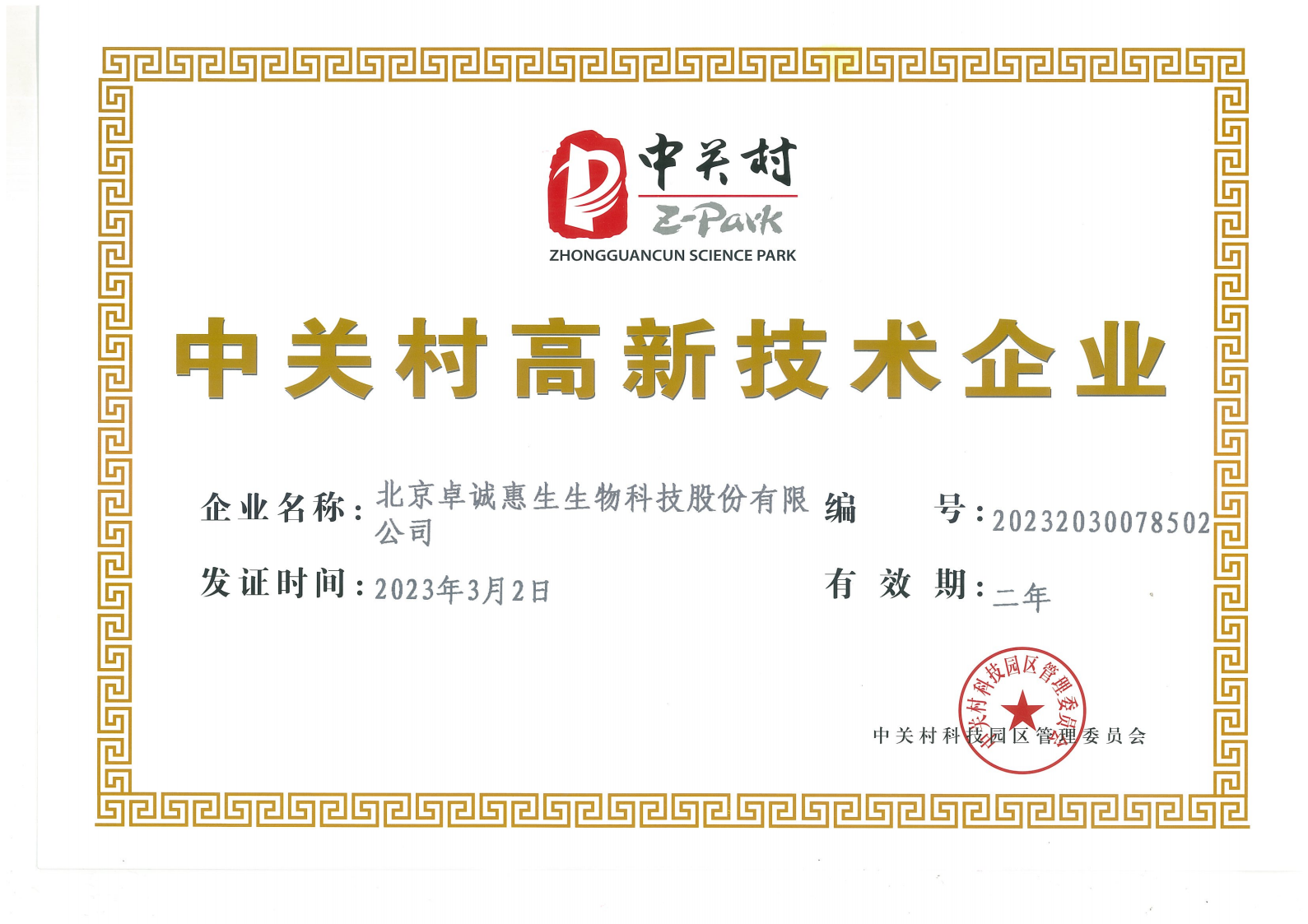 - 中關(guān)村高新技術(shù)企業(yè)證書
